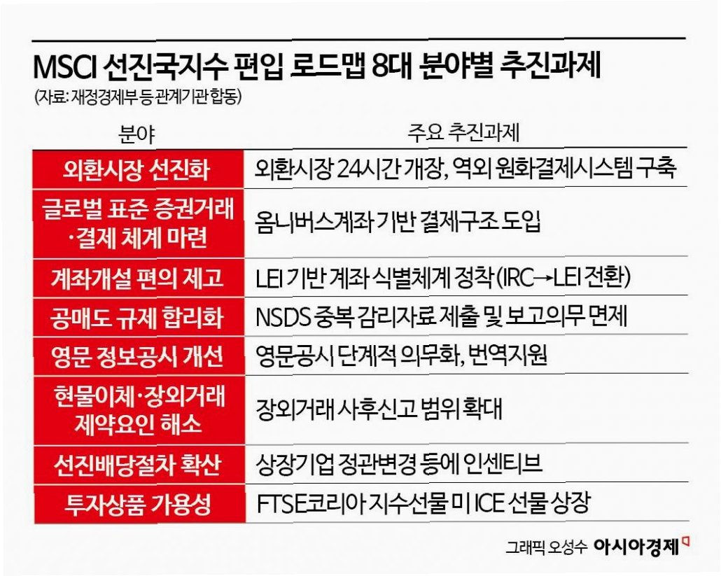 MSCI 선진국 지수에 편입되는 것은 해당 국가의 주식 시장에 긍정적인 영향을 미칩니다. 이는 다음과 같은 구체적인 변화를 가져옵니다.
