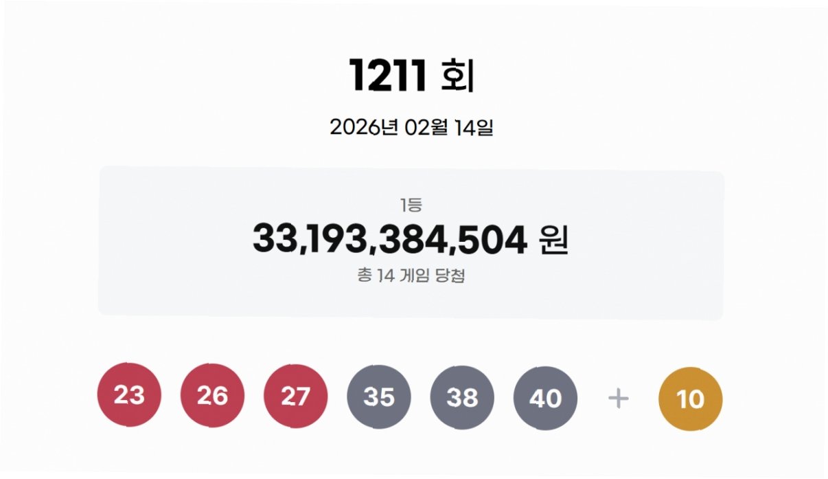 1211회 로또 1등 당첨 번호 발표제1211회 로또복권 추첨 결과, 1등 당첨 번호로 '23, 26, 27, 35, 38, 40'이 확정되었습니다. 보너스 번호는 '10'으로 발표되었습니다. 수많은 사람들의 꿈과 희망이 담긴 이번 추첨 결과에 많은 관심이 쏠리고 있습니다. 당첨 번호 분석 및 통계이번 1211회차에서 나온 당첨 번호들의 패턴을 분석하는 것은 로또 마니아들의 오랜 관심사입니다. 과거 당첨 번호 통계를 기반으로 특정 번호의 출현 빈도나 번호대별 분포 등을 살펴보며 다음 회차를 예측하려는 시도가 이어지고 있습니다. 하지만 로또는 독립적인 확률 게임이므로, 과거 데이터가 미래 당첨 확률에 직접적인 영향을 미치지는 않습니다. 로또 당첨, 꿈을 현실로 만드는 기회로또 당첨은 일확천금을 ..
