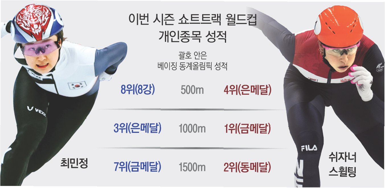최민정의 강력한 라이벌, 스휠팅의 롱트랙 전향한국 여자 쇼트트랙의 에이스 최민정과 치열한 경쟁을 펼쳤던 쉬자너 스휠팅(네덜란드)이 스피드스케이팅(롱트랙)으로 종목을 변경한 후 예상치 못한 수난을 겪고 있습니다. 월드컵 꼴찌, 엉덩이 노출 사고까지스피드스케이팅에서 세계적인 수준을 유지하는 네덜란드 선수들과의 경쟁에서 밀려 내년 2월 열리는 2026 밀라노·코르티나 동계올림픽 출전이 불투명해졌습니다. 뿐만 아니라 국제빙상경기연맹(ISU) 월드컵에서 넘어져 꼴찌를 기록하는 굴욕을 겪었습니다. 넘어짐과 유니폼 찢어짐, 불운의 레이스스휠팅은 지난 13일 노르웨이 하마르에서 열린 2025-2026 ISU 스피드스케이팅 월드컵 4차 대회 여자 500m 1차 레이스에서 레이스 도중 넘어졌습니다. 설상가상으로..
