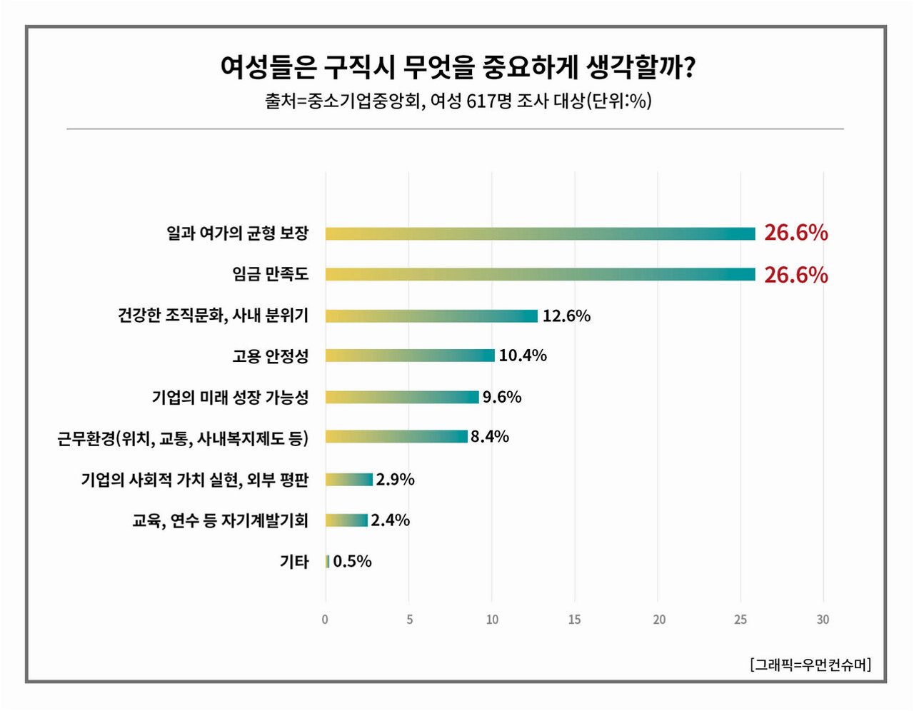 2026년, 취업 시장의 현실과 구직자들의 기대올해 구직자들의 평균 희망 초봉이 약 4300만원으로 나타났습니다. 11일, 채용 플랫폼 진학사 캐치가 구직자 1204명을 대상으로 ‘2026년 가고 싶은 기업’을 조사한 결과, 62%가 대기업을 선호하는 것으로 나타났습니다. 공기업·공공기관(12%), 중견기업(12%), 외국계기업(6%), 중소기업(5%)이 그 뒤를 이었습니다. 이는 치열한 경쟁 속에서도 안정적인 직장을 원하는 구직자들의 심리를 반영합니다. 가장 중요한 선택 기준: 연봉, 워라밸, 복지구직자들이 기업을 선택하는 데 가장 중요하게 고려하는 조건은 연봉이었습니다. ‘연봉이 높은 기업’이 53%로 압도적인 1위를 기록했으며, 워라밸(16%), 복지(12%), 성장(8%), 동료(6%), 근..